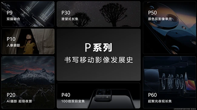 同时,华为P系列也是华为影像的集大成者。比如2016年发布了P9,是首款徕卡合作的影像旗舰,并且业界领先的使用了双摄系统;2018年发布的P20系列开启了夜景拍摄时代,让手机在暗光环境下也能获得清晰明亮的图像;2020年发布P30系列第一次使用RYYB传感器,进光量比RGBG传感器高出40%,夜景表现再次大幅提升;去年发布的P60系列,长焦镜头的感光能力得到大幅增强,可以轻松拍摄出精彩的长焦夜景照片