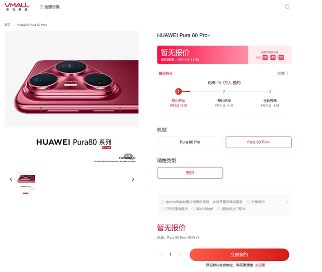 目前,华为官方已开启Pura 80 Pro和Pura 80 Pro+的预约活动,预约将于6月11日14点30分结束。华为Pura 80系列在长焦影像方面的具体技术细节和升级幅度,仍需等待官方在发布会上正式揭晓。