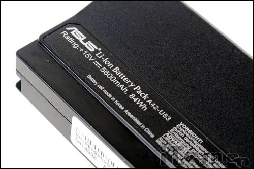 电池方面,这款华硕U43JC配备的是一块15V/5600mAh 84Wh的高容量锂电池,而实际续航方面,我们采用了Battery Mark进行了相关测试,在测试过程中,我们将电池模式调制高性能状态,屏幕亮度为50%,无线网卡及蓝牙设备应用全开,最终续航时长为5小时29分钟。接近6个小时的续航时长对于一款14寸全功能笔记本而言已经是相当优秀了。如果我们采用低功耗模式(集成显卡模式),相信续航成绩会更加的赏心悦目。