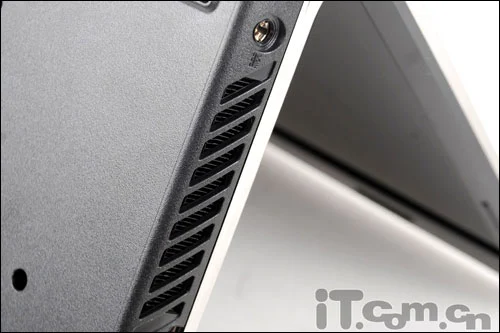 华硕U43JC是一款全功能笔记本,所以在端口配备上显得十分全面。机身左侧依然是端口集中地,配备有一个电源线插孔,一个HDMI高清输出,一个VGA端子,一个USB2.0和一个用蓝色标明的USB3.0端口,以及一组音频输入/输出端子。此外,CPU散入出风口也照例配置在了左侧,这样一来,握鼠标的右手就会不受出风口温度的影响了,可以很好的做到“只吹热风不烫手”。