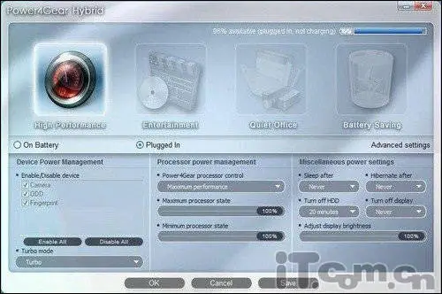续航能力的好坏是评价一款笔记本是否优秀的重要衡量基准之一,在糟糕的续航面前,笔记本电脑高移动性这一相比台式电脑的最大的优势就变得毫无意义。在前文中我们也有所提及,这款华硕U43JC在节能应用方面显得尤为注重,NVIDIA OPTIMUS技术搭配ASUS SHE技术能有效的控制能源的利用,最大程度上做到了节约功耗,从而在侧面也更有利于电池的持久续航。