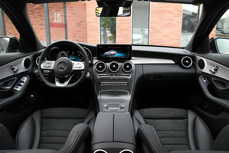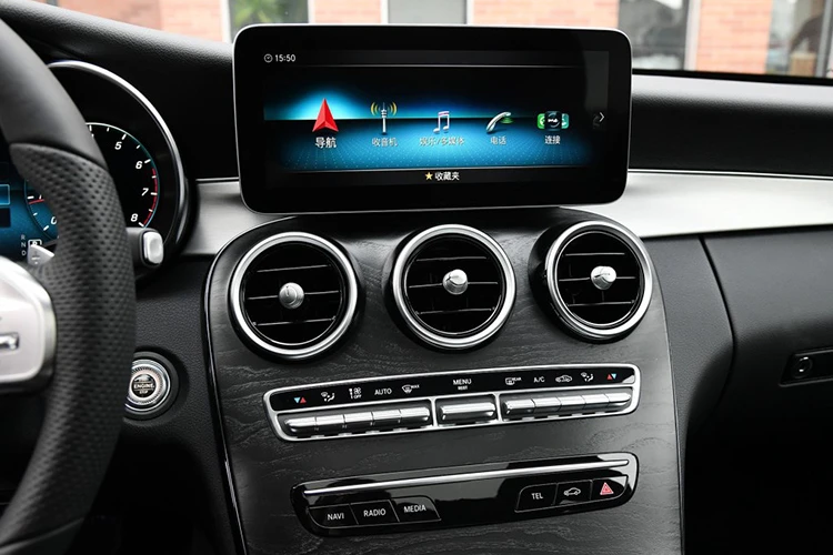 内饰部分,新车采用全新的三辐式方向盘,与奔驰最新的产品一样,配备双拇指控制(Dual Thumb Controls)系统,提升操作便利性;最新一代的COMAND人机交互系统出现在国产新款C级上,这是海外版所没有的,触摸板尺寸更大,取消旋钮设计。另外,新车仪表盘变为纯液晶仪表,尺寸为12.3英寸,中控上方的液晶屏幕尺寸升级到10.25英寸。