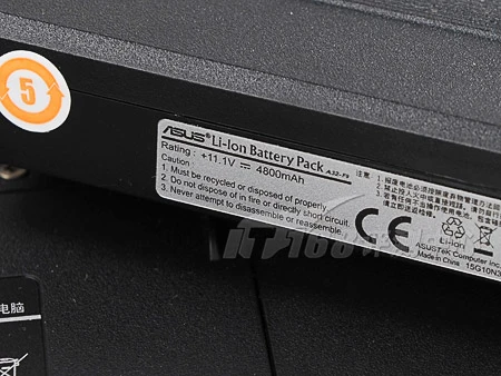 华硕F6V在标配6芯电池情况下,机身后部要略微凸出一些,多少影响些产品的整体美观。F6V标配了11.1V 4800毫安时锂电池,电池配备标准与同尺寸产品配备水平相仿。在电池续航时间测试中,F6V整体表现不错。高强度办公续航时间在3个小时以上。DVD回放时间也超过了两个小时。