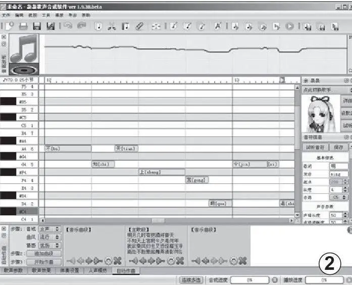作曲完成后,我们先来欣赏一下吧。在工具栏单击“播放全部音符”按钮,该软件就会把你输入的歌曲自动配上曲调,然后由选定的演唱者“余袅袅”演唱出来。想导出歌曲也很容易,单击工具栏的“导出全部音符”按钮,便可把整首歌曲导出为WAV格式的文件(如图2)。