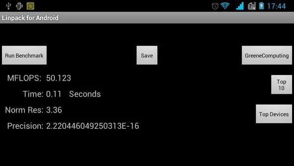 《Linpack for Android》是一款用于测试Android平板系统CPU浮点性能的性能测试软件。该款软件通过利用高斯消元法求解一元N次稠密线性代数方程组的测试,评价Android平板的浮点性能。新版本的《Linpack for Android》性能测试软件可以实现在高负荷运算要求下充分调用双核平板中的两个处理器的目的,达到测试的准确性。