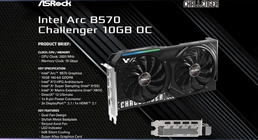 另外,从目前的情况来看,B580、B570都仅支持PCIe 4.0接口,支持DisplayPort 2.1和HDMI 2.1。