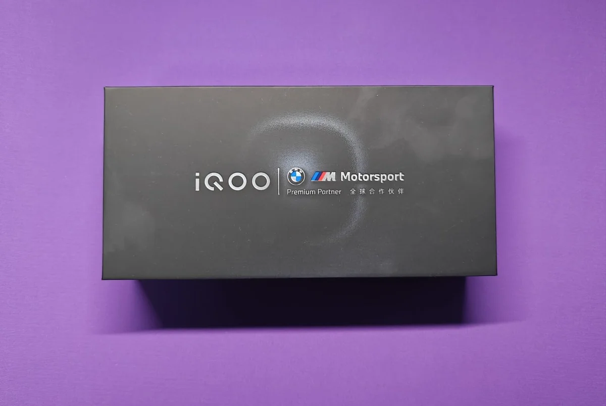 手机的包装盒子为纯黑色设计,带有iQOO和bwm的合作LOGO,并且有意思的是在LOGO外围又一圈光环,先开始还以为是盒子反光,仔细一看其实是设计的iQOO13的镜头能量光环。
