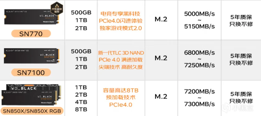 SSD:西部数据WD_Black SN7100 1TB PCIe 4.0 SSD