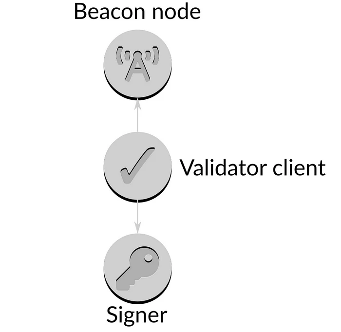 通过使用单独的验证者客户端,将抵押 32 个 ETH 的密钥连接到这些“完整节点”,该节点成为网络中的“验证者节点”。