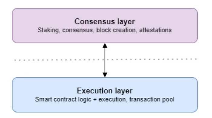 - 执行层:该层负责执行 Ethereum 交易并运行智能合约的逻辑,并包括执行客户端。