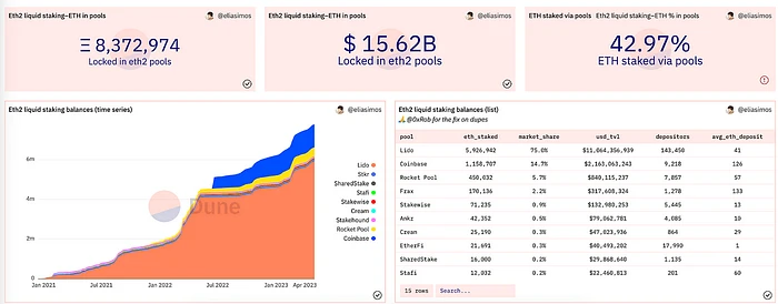 ETH2 流动性质押服务统计 (Dune)