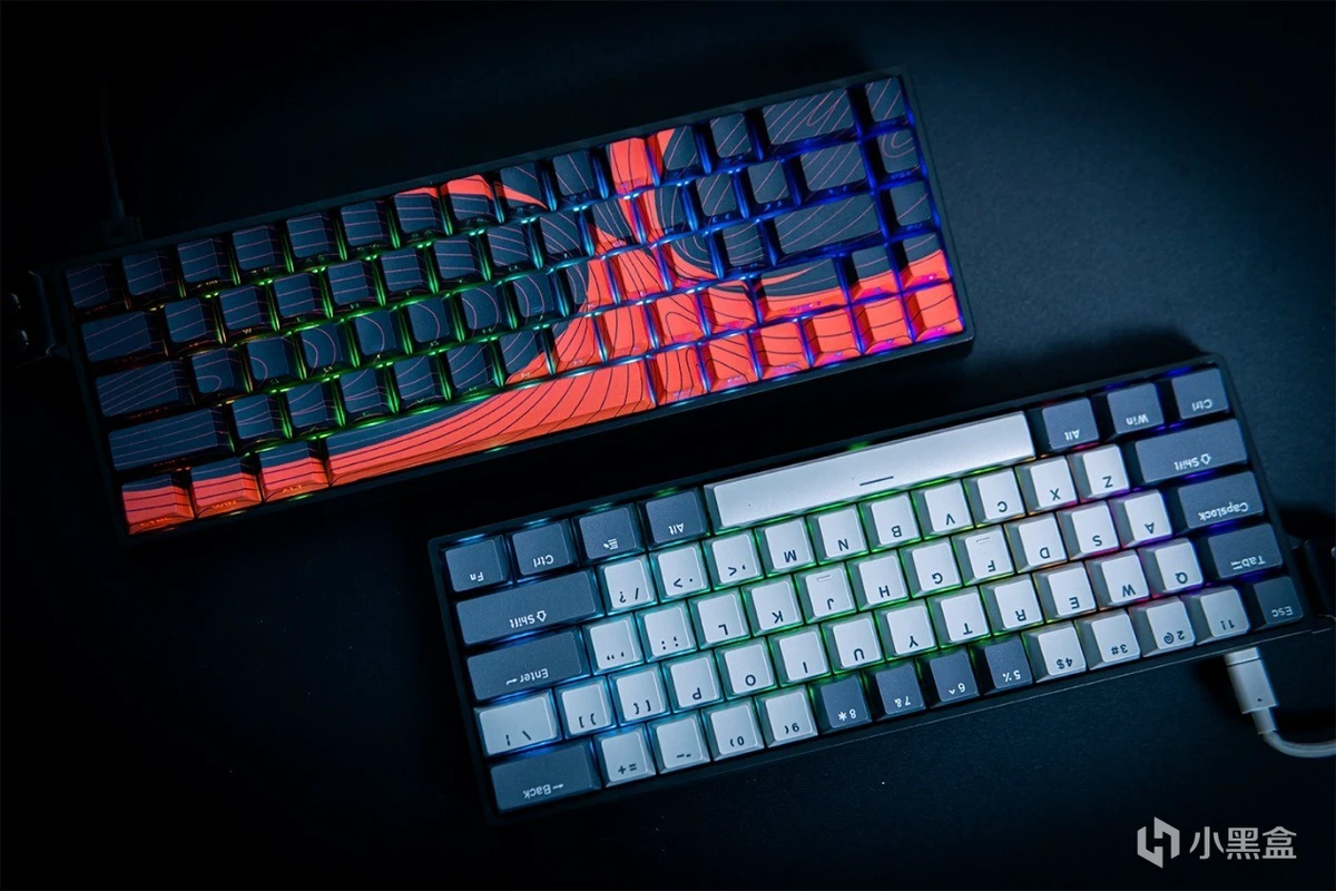 我这里就把Win60HE Pro(形意磁轴 浅灰色拼接)灰白键帽换成了双皮奶键帽,键帽四周和字符均可透光,夜间看的更清晰,RGB流动效果也更自然。