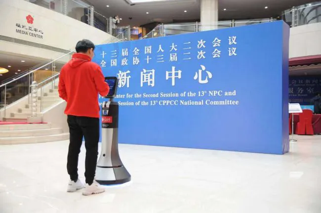 有了这些“武艺”傍身,两会期间的“小融”,可还顶着萌萌的大眼,兼做起接待引领记者和代表的任务呢,真是机器人界的多面手哈。