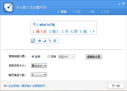 然后通过简单设置,就可以按照自己的意愿选择适合自己的方式,或干脆直接点击三下“下一步”就可完成设置完成,真正开启极简输入法之旅。
