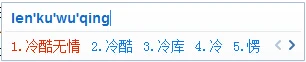 图6:支持自动纠错如输入过程缺少字母g也可出现正确词汇“冷酷无情”