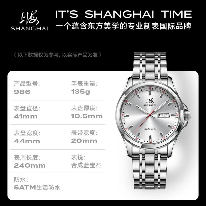 上海男士自动机械手表型号986灰面钢带:作为国产手表的佼佼者,这款手表在设计上融入了东方美学,性价比极高。