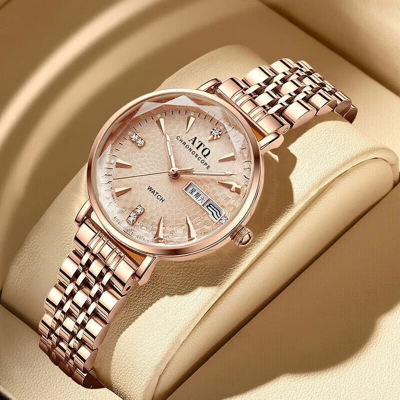 这款ATQL610机械手表,真的是让我一见倾心!选择它,主要有以下几个原因:外观设计时尚,轻奢复古的风格,无论是商务场合还是日常穿搭,都能轻松驾驭。表盘采用个性棱形设计,搭配太阳纹锆钻时标,璀璨夺目,让人无法抗拒。