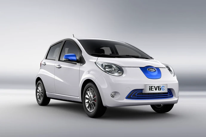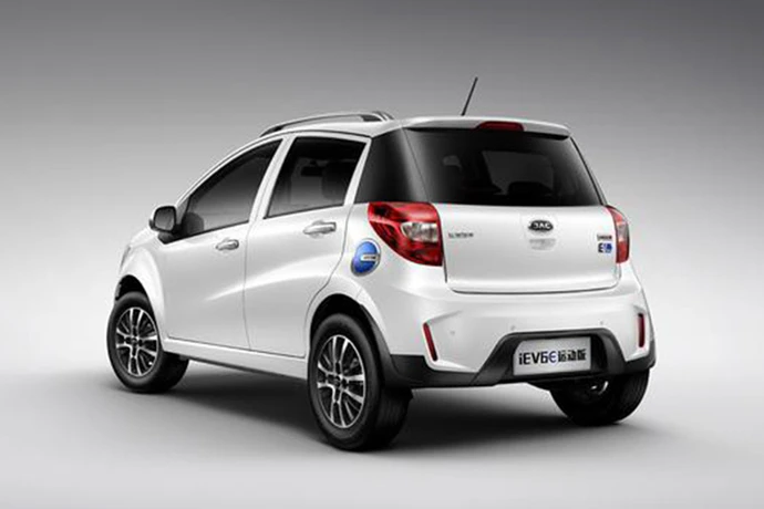 江淮iEV6E升级版的外观沿用了老款车型的设计风格,整体风格圆润可爱,车头封闭式格栅和水滴型头灯的造型可以有效地降低空气阻力。新车长宽高分别为3630×1670×1475mm,轴距为2390mm,定位为微型车。