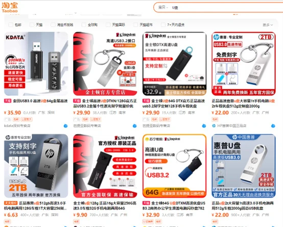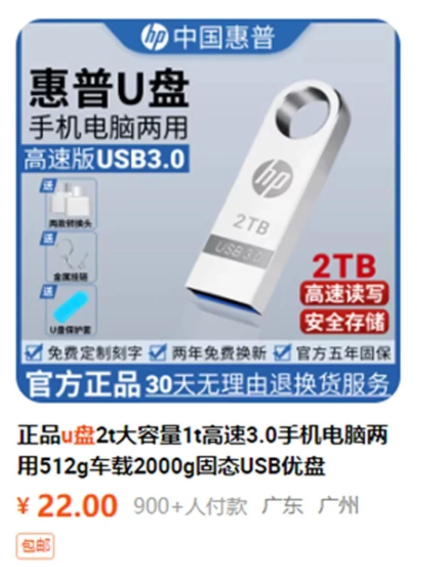 甚至淘宝所谓“惠普官方店”(那当然是假的官方店)在卖50元 2TB的U盘。