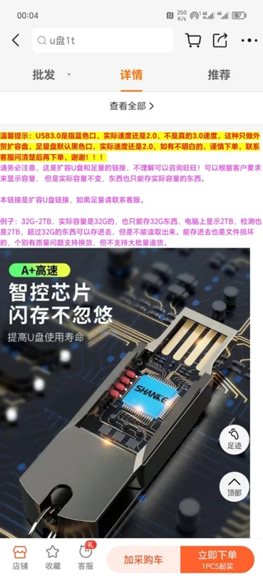 以及,那些28元2TB甚至更多的必定是造假!目前市面上几乎没有超过1.5TB的正经U盘!更别提什么20TB的U盘了!