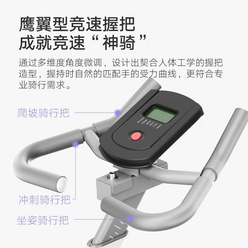参数方面,D8的精工细作体现在每一个细节。例如,其推拉滚轮设计,让女生也能轻松搬移。更重要的是,通过专属亿健APP,你可以随时掌控运动数据,实现运动、饮食两手抓,让每一次骑行都有据可依。