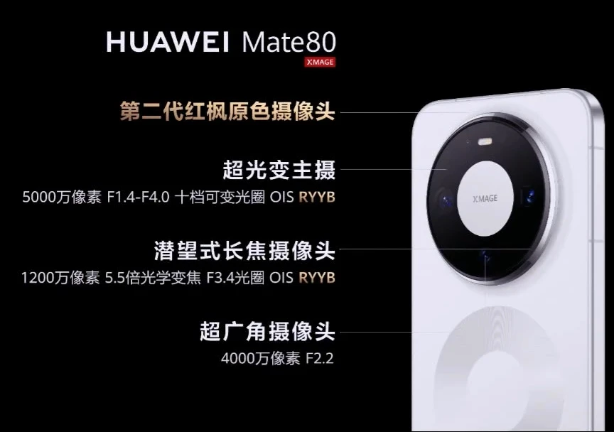主摄:50MP 1/1.56" SC550XS, ƒ/1.4-ƒ/4可变光圈,支持OIS,RYYB;