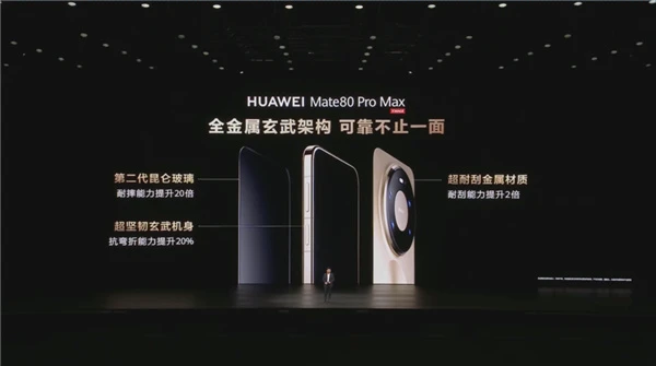 而下面那个环也不完全是装饰,因为 Mate 80 Pro Max 采用了全金属的玄武架构,说白了就是除了第二代昆仑玻璃、玄武机身( 今年不再是高亮钛了 ),背板也变成了金属材质,更加耐刮。