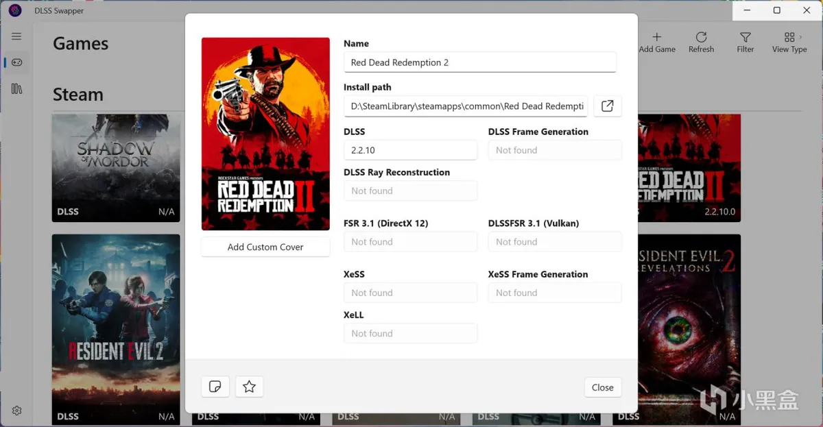 打开DLSS Swapper后会自动扫描你安装的游戏,也可以自己加(学习版)游戏.