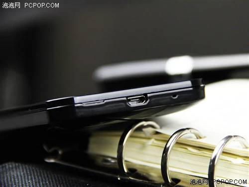 手机底部也比较简单,只有一个microUSB数据线接口,这个接口可以支持数据传输和充电功能,也是现在智能手机必备的功能,另外本机开后盖的小凹槽和用于提升通话音质的吸引孔都在底部。