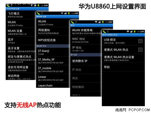 在网络方面,华为U8860支持中国联通WCDMA制式的3G网络以及必不可少的Wi-Fi无线局域网,对上网体验有强有力的保障,而且本机还支持无线AP热点功能,可以共享给其他终端上网。