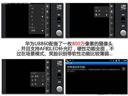 拍照方面,本机内置了800万像素的摄像头,功能方面支持LED补光灯以及AF自动对焦,在光线不足或者拍摄文本的时候会得到有力保障,表现令人满意。