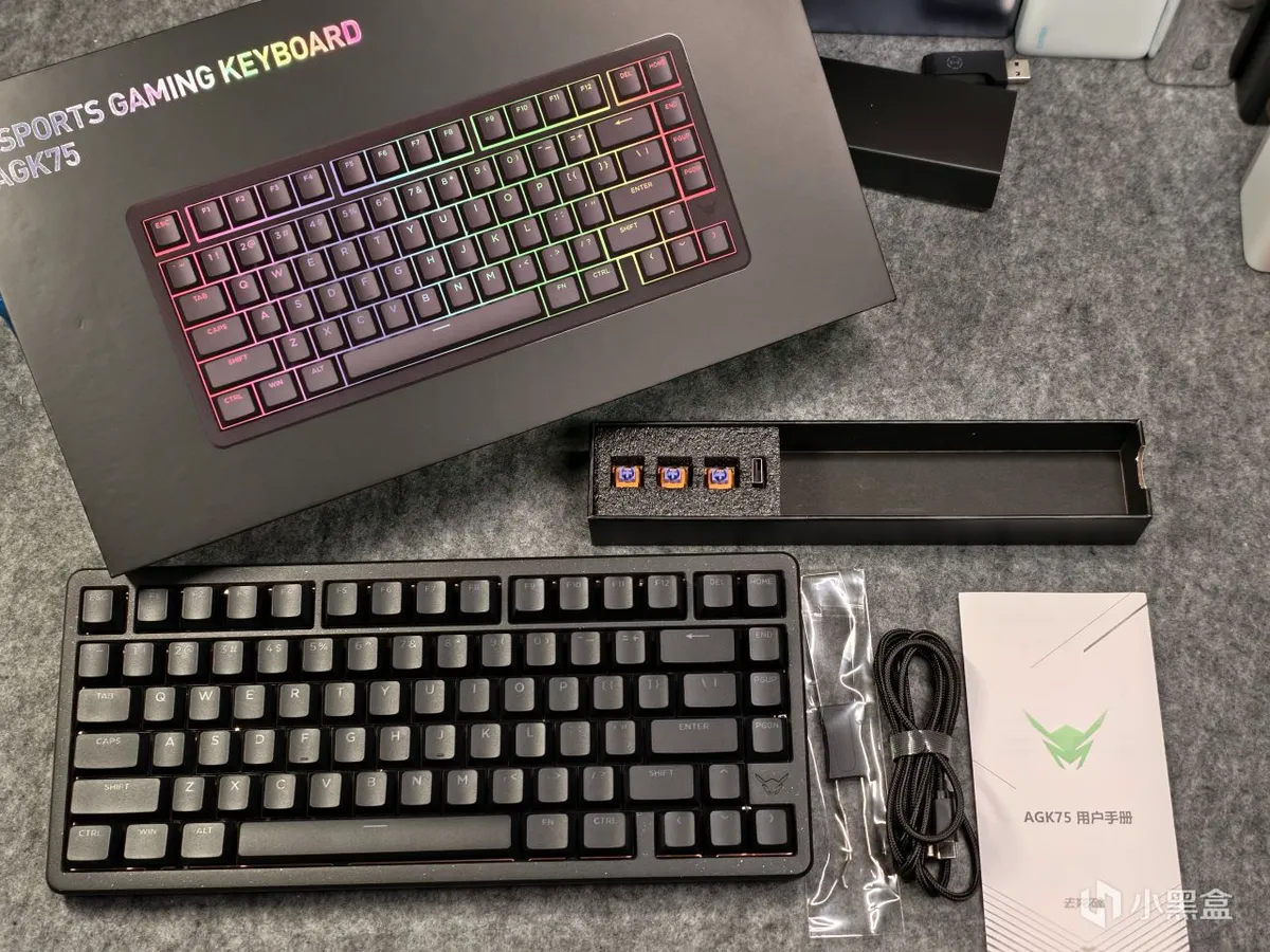 AGK75为雾面PBT双色注塑键帽+凯华全POM磁轴,0.1mm精度,0.1-2.5RT范围。手感不错,且得益于填充,Top结构下依旧带点Gasket“麻将音”那味儿。
