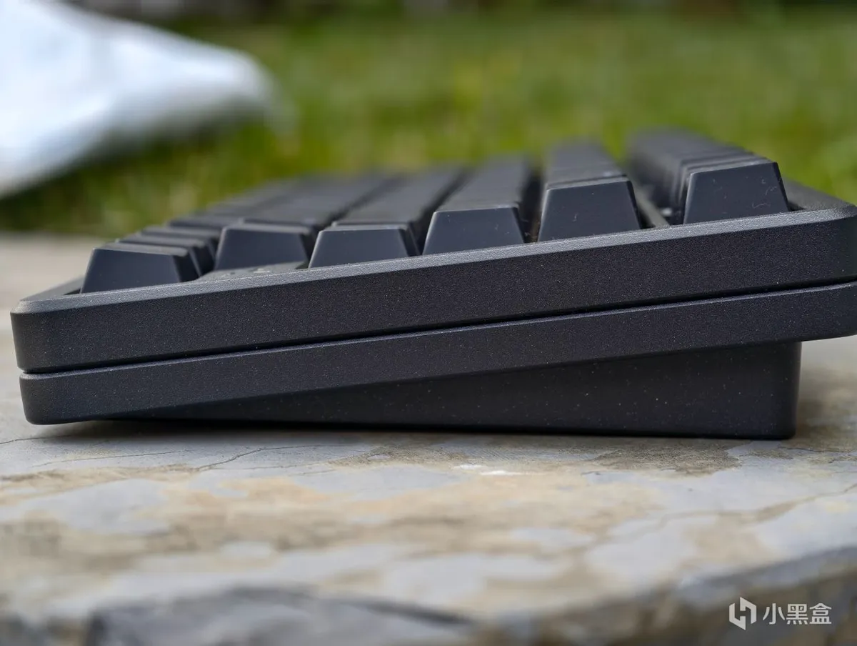 键盘整体采用CNC全铝合金机身,喷涂工艺比较独特,添加星点反光亮粉的同时表面作磨砂处理,相较于常规的纯色纯平的铝坨坨,质感不落下风。