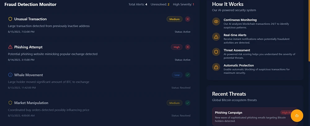 AI 代理持续监控区块链交易、交易所活动和社区信号,以识别可能影响比特币价格或安全性的潜在欺诈、可疑活动和市场操纵策略。