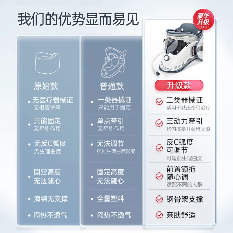 在选择颈椎牵引器时,人们常常面临一些痛点,如产品的效果、质量、舒适度以及适应性。消费者担心花了钱却不能得到有效的治疗,或是设备质量不佳导致使用过程中出现问题。此外,不同的颈椎状况和个人偏好也增加了选择的复杂性。
