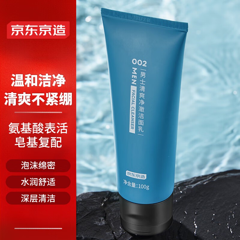 京东京造男士清爽净澈洁面乳100g 强清洁氨基酸皂基复配 洗面奶洁面