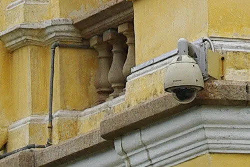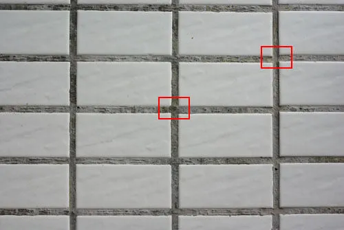 我们在一光照均匀的墙壁上进行中心与边缘的成像对比,分别在100%原图下截取了下图中红框的示意位置: