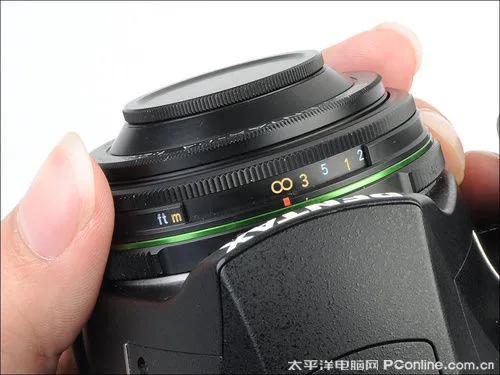 宾得DA 40mm F2.8 Limited是一支数码单反用的镜头,并没有光圈调节环,镜身上只有前端的手动调焦环。该调焦环的阻尼均匀而不紧,手动变焦也十分舒适。说到这样设计的镜头盖,虽然体积上没话说,但是频繁地拧镜头盖也比较郁闷,况且镜头盖也够小了,不小心的话便会容易弄丢。