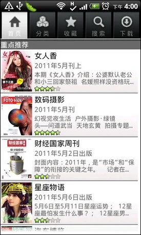 HTC的Market以及电子杂志界面