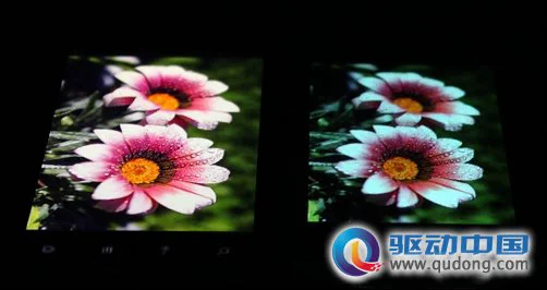 前面我们还提到了惊艳S710e在显示屏方面的表现,在这里我们也找来了一台分辨率同为480X800但尺寸不同的联想的乐Phone来进行对比。惊艳S710e采用的是索尼的Super LCD,而乐Phone 3GW100则是三星AMO LED的显示屏,我们可以看看两者在屏幕显示效果上的一些差异,但是因为后者并非评测用机,所以机器屏幕在使用中贴了一张磨砂贴膜,必然会影响到对比效果,所以在这里也只能作为参考。