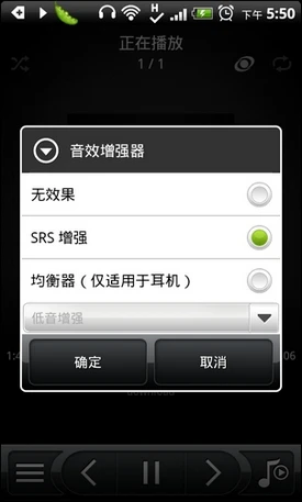 音乐播放界面以及声效强悍的SRS增益管理
