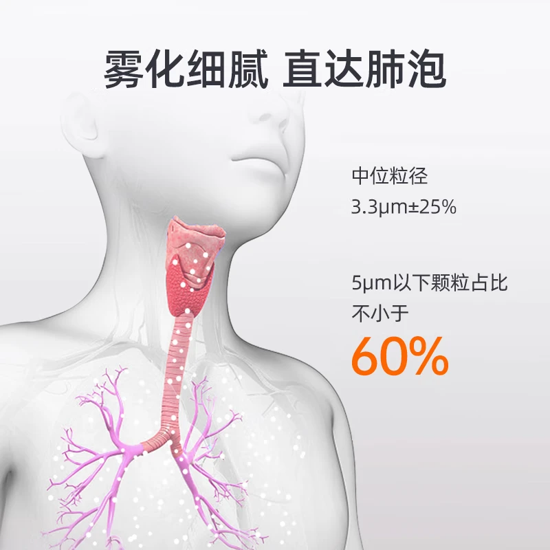佳萌这孩子,有个口头禅:“哎呀我摔倒了,要宝宝亲亲才可以起来~”您别看它萌,实力可不含糊!雾粒细腻,中位直径只有2.9μm(±25%),小于5μm的雾粒占比超过65%,药液直达患处,让您轻松呼吸。