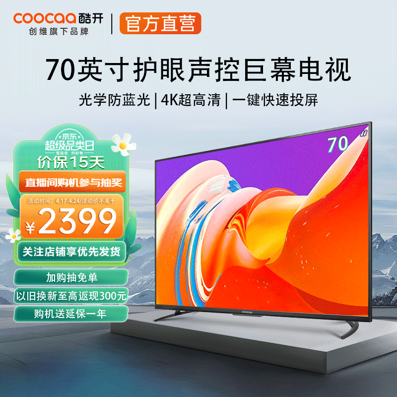 酷开(coocaa) 创维电视70英寸电视机70C70 会议智能平板游戏电视金属全景屏 家电以旧换新