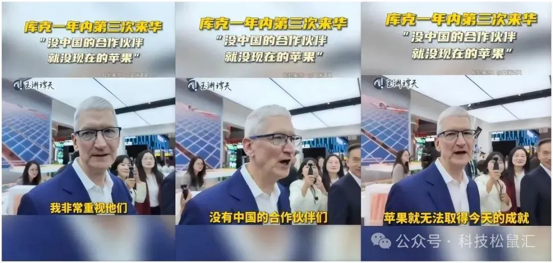 库克把姿态放得很低大打感情牌,与早几年剔除中国供应链时的态度形成鲜明的反差。这也不是库克第一次打感情牌了,2024年3月,库克中国行高喊“我爱中国,我爱中国人”冲上各大平台的热搜,网友纷纷吐槽,库克其实心中想的是“我爱中国钱,我爱中国人民币”。2024年10月,库克年内第二次来华,库克表示:苹果视中国为重要市场和关键供应链伙伴,致力于在华长期发展,将加大对供应链和研发等领域的投入。