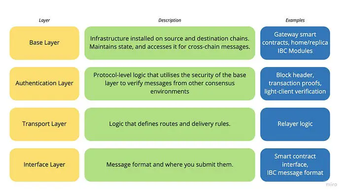Sergey 提出了将跨链系统拆分为栈组件。这使我们能够更好地理解它们提供的服务并评估这些服务的安全性: