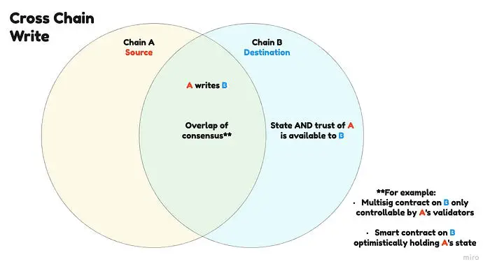 我使用跨链中的读/写来表示从另一个链读取或写入状态和安全性。“写”在这种情况下实际上意味着你正在向目标链提供安全读取你自己状态的能力。也就是说,能够验证状态是来自你。