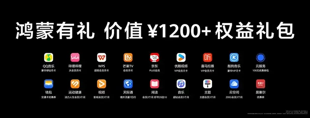 除了免息好礼外,购买新机还可以参与“鸿蒙有礼”活动,领取权益礼包,最高达1200元+,新机用户还可以参加华为钱包“鸿蒙生态日日新”签到活动领取随机红包。