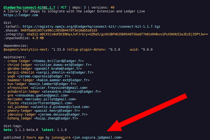 - 攻击者使用被盗的 NPMJS 凭据发布了 Ledger Connect Kit 的受损版本(版本 1.1.5、1.1.6 和 1.1.7)。
