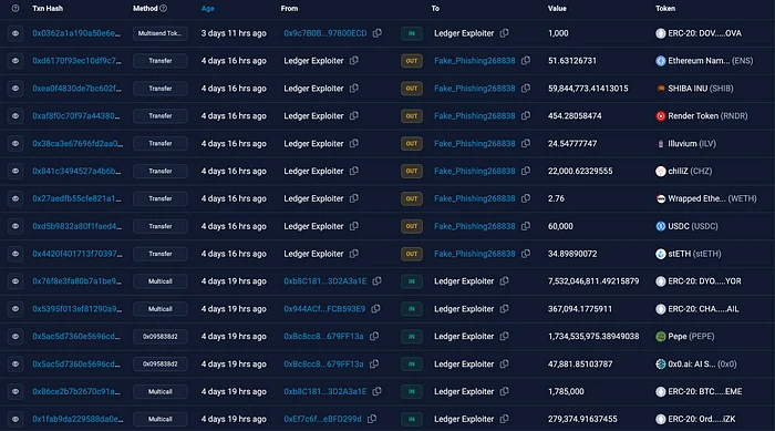 黑客利用流氓 WalletConnect 项目,将资金重定向到一个受控钱包。在意识到后的 40 分钟内,Ledger 部署了一个修复程序,尽管恶意文件已上线约 5 个小时。然而,实际的资金耗尽期被限制在不到两个小时内,这导致受影响的用户损失了约 $600,000。