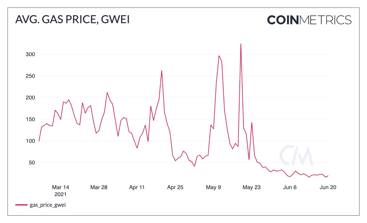 - 图 1. 过去三个月的平均 Gas 价格。在网络拥堵时就会飙升。 -